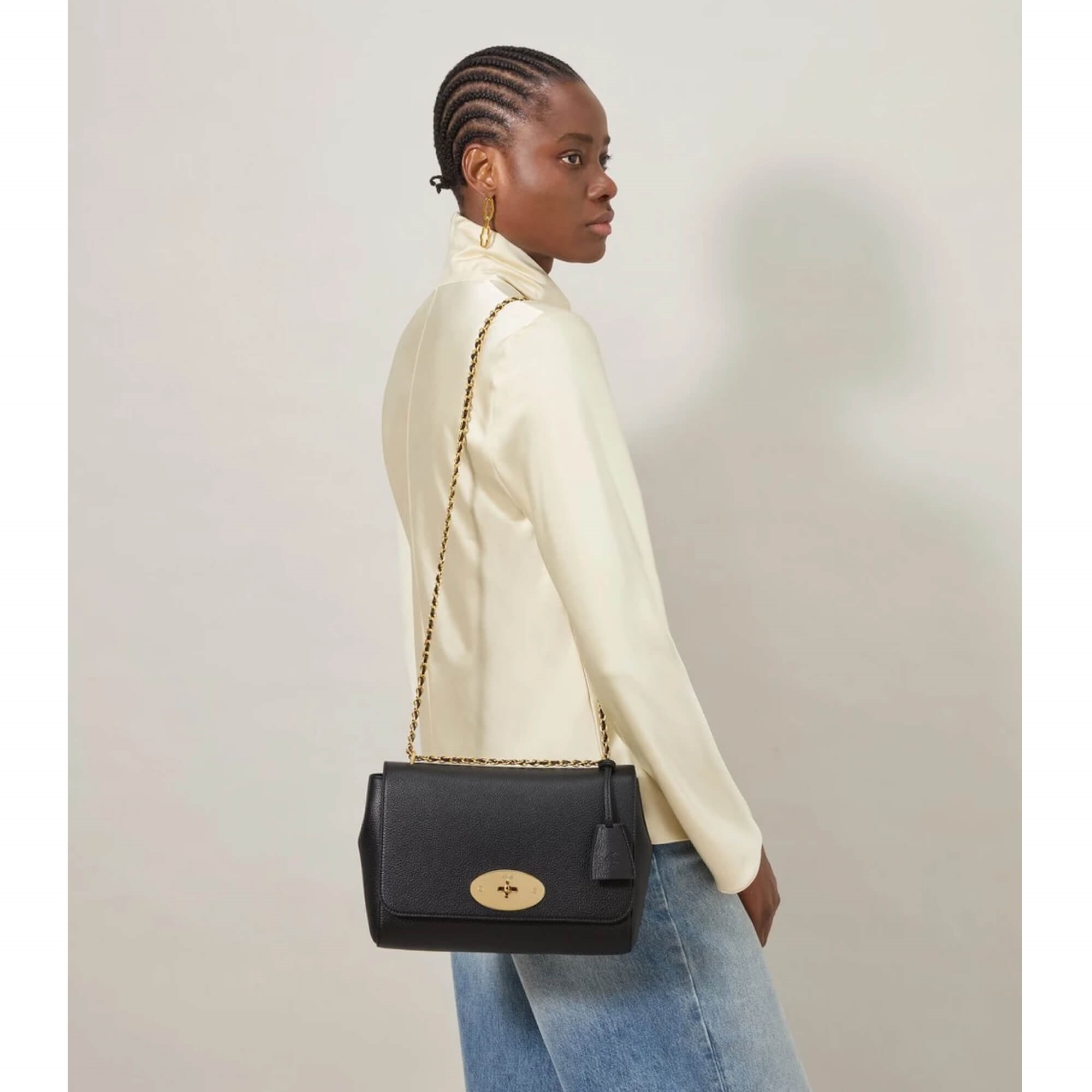 Medium Lily er en mellemstor udgave af vores bedst sælgende Lily-taske og forener tidløs elegance med funktionalitet til hverdagen og særlige anledninger. Tasken lukkes med den ikoniske Postman’s Lock og har messingfarvet hardware, der understreger det eksklusive udtryk. Den flettede skulderrem i læder og kæde gør det muligt at bære tasken over skulderen eller som clutch. Indvendigt har tasken et rummeligt hovedrum med en lynlåslomme samt en blød mikrofiberforing, mens en praktisk baglomme på ydersiden giver nem adgang til telefon, kort eller billetter. Designet fuldendes af den klassiske hængende Mulberry-fob med skjult hængelås.