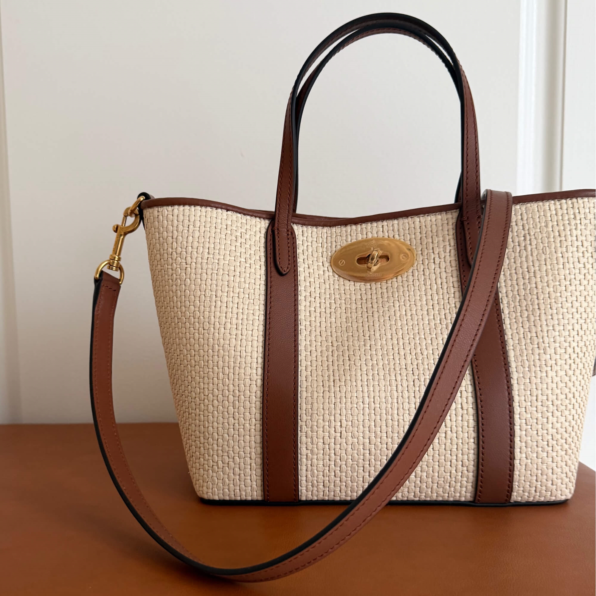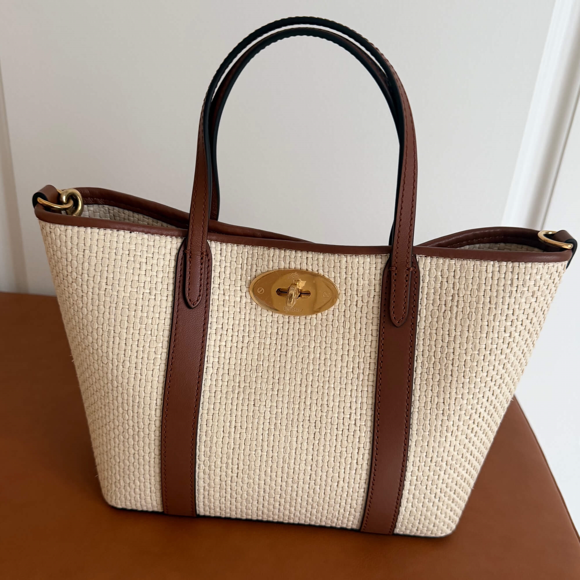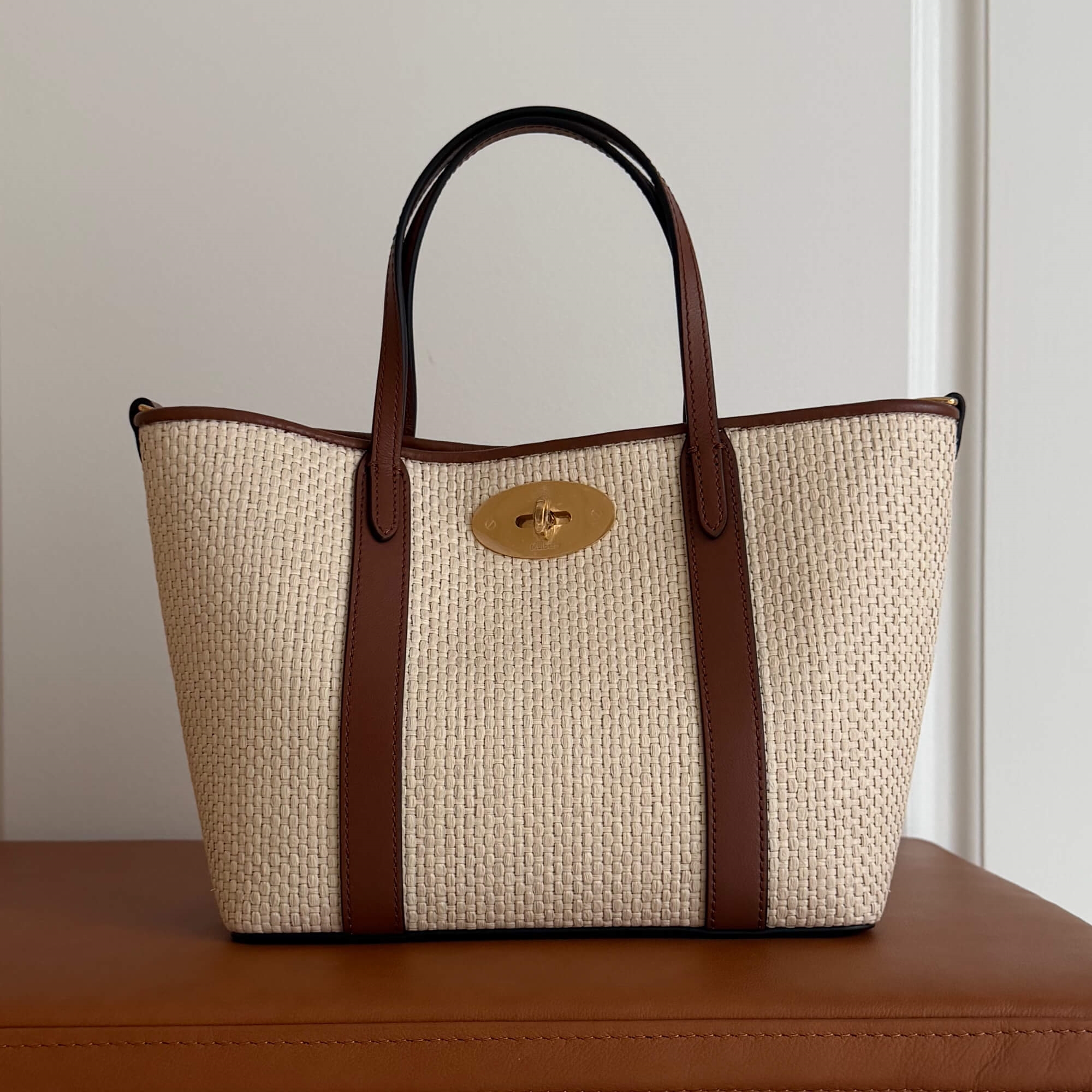 Mulberry Mini Bayswater Tote Raffia, Ecru-Bright Oak