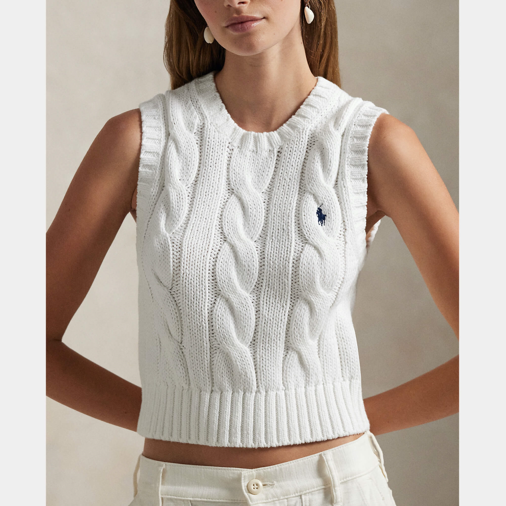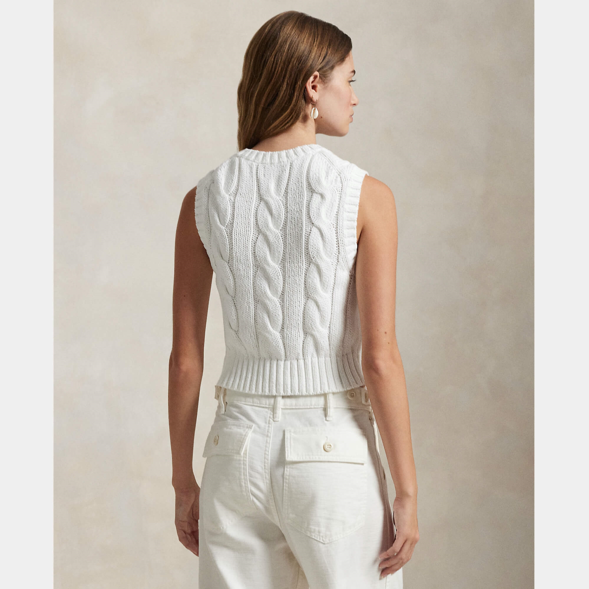 Polo Ralph Lauren Cable-Knit Cotton Cropped Vest, Hvid