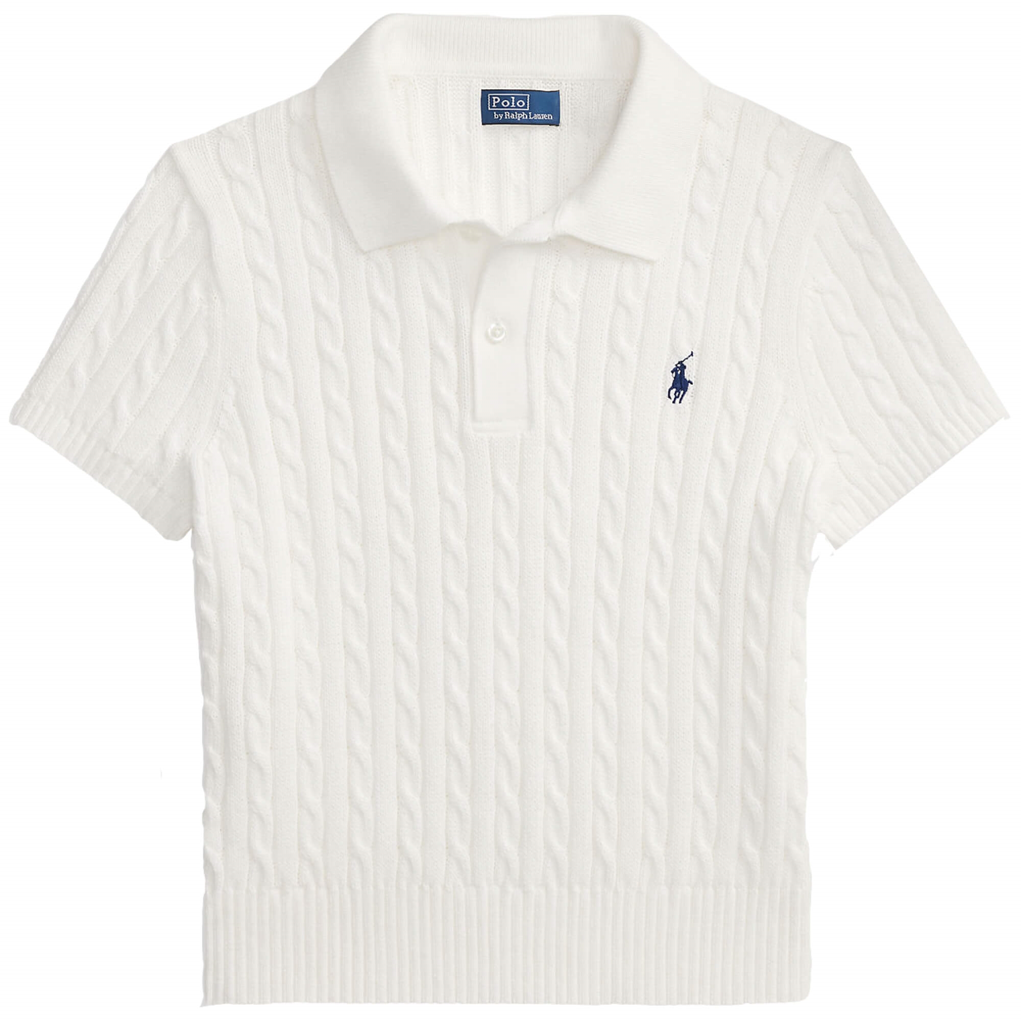 Polo Ralph Lauren Cable-Knit Cropped Polo Shirt, Hvid