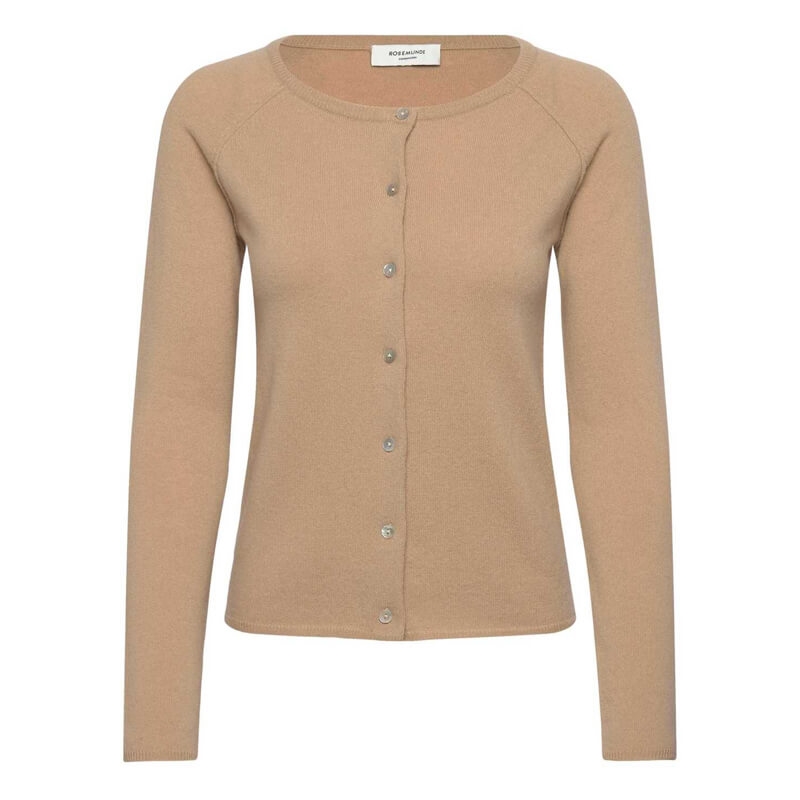 Skøn cardigan fra Rosemunde i farven Safari, som er en lys caramel farve. Rosemunde Cardiganen har en fin rund halsudskæring og gennemknappes med søde små perlemorsknapper. Udover det, så har den en fin syningsdetalje omkring skulderne  både bagpå og foran. Dens pasform er så fin, men ønsker man ikke, at den skal sidde for tæt, anbefaler vi at man går en størrelse op. Rosemunde er kendt for at lave lækre basisvarer man kan bruge sæson efter sæson, og denne skønne cardigan fra Rosemunde er ingen undtagelse. Cardiganen lavet i 70% uld og 30% Cashmere hvilket giver den en skøn blød og let kvalitet. En musthave i sommergaderoben der forbliver et sikkert hit år efter år.
