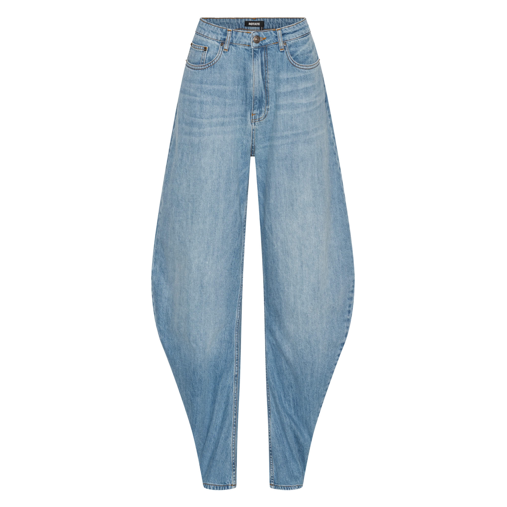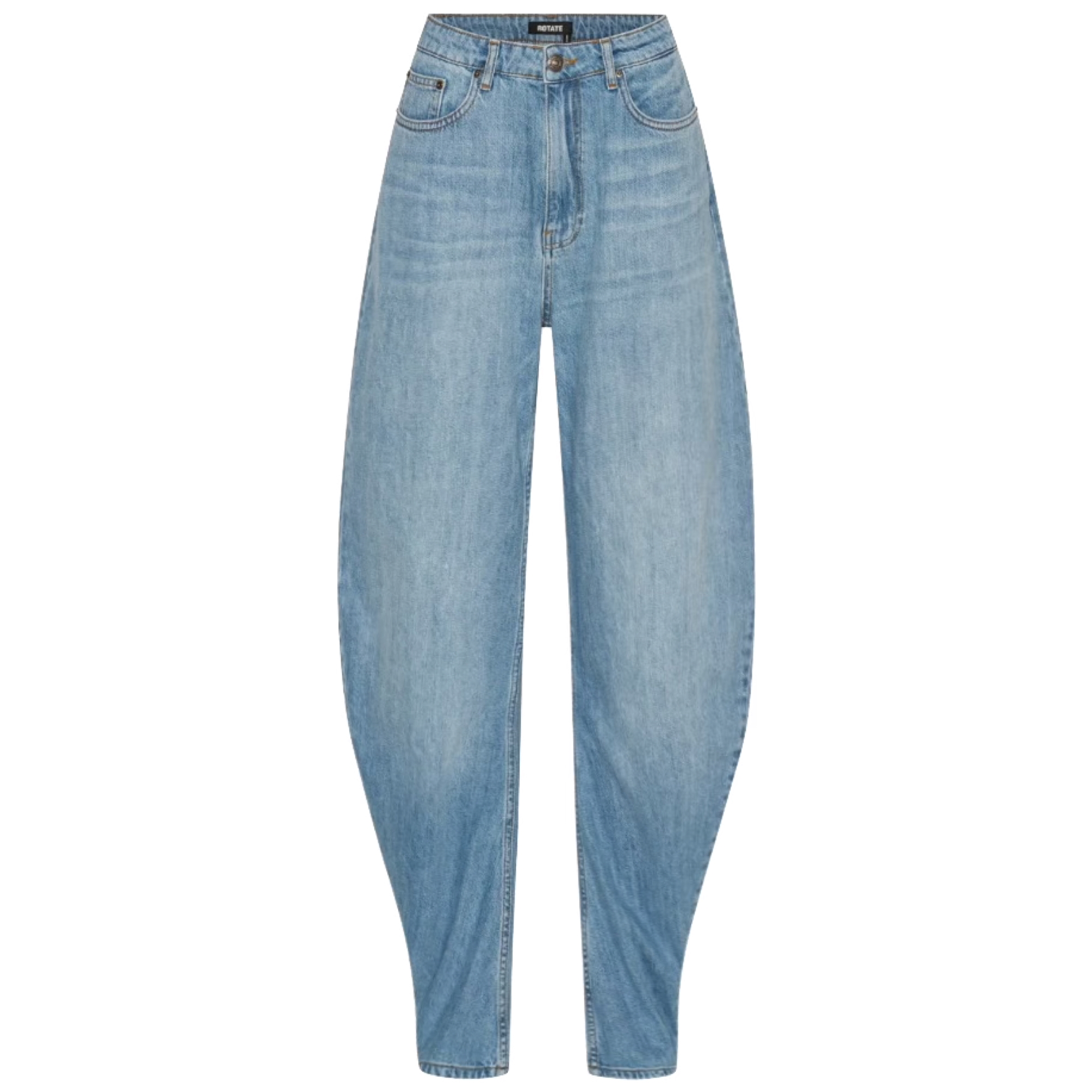 Rotate Draped Barrel Leg Jeans, Light Blue Denim Rotate Draped Barrel Leg Jeans, Light Blue Denim