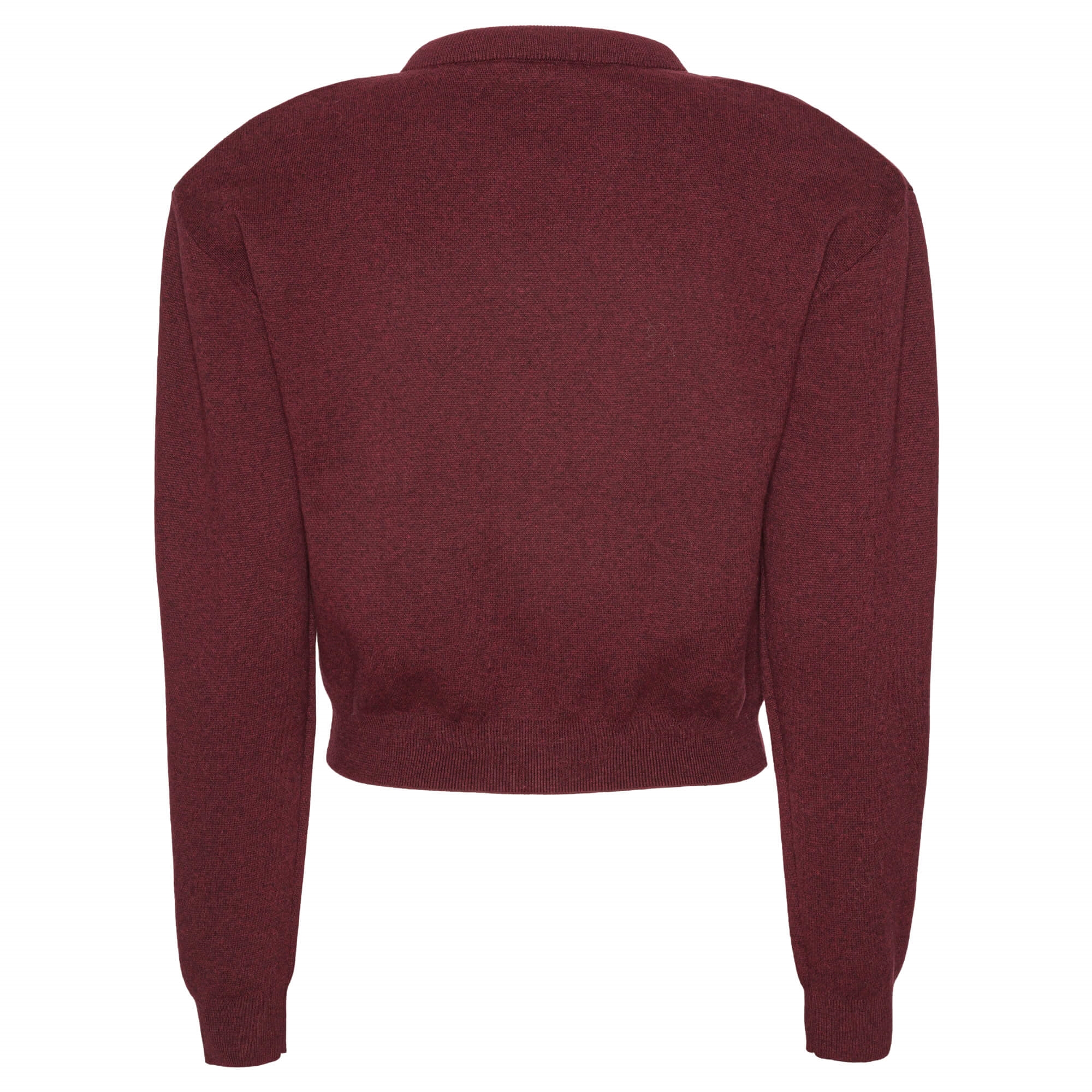 Denne fine cropped cardigan fra ROTATE, er strikket i en eksklusiv blanding af økologisk bomuld og kashmir. Det faste, men bløde materiale giver en smuk, struktureret pasform, der både føles og ser raffineret ud. Designet skiller sig ud med en tofarvet ribkant ved halsudskæringen og knapstolpen, som tilføjer et grafisk twist. Fortil prydes cardiganen af metalbogstaver, der staver “ROTATE” – en iøjnefaldende detalje, der tilfører kant og karakter.