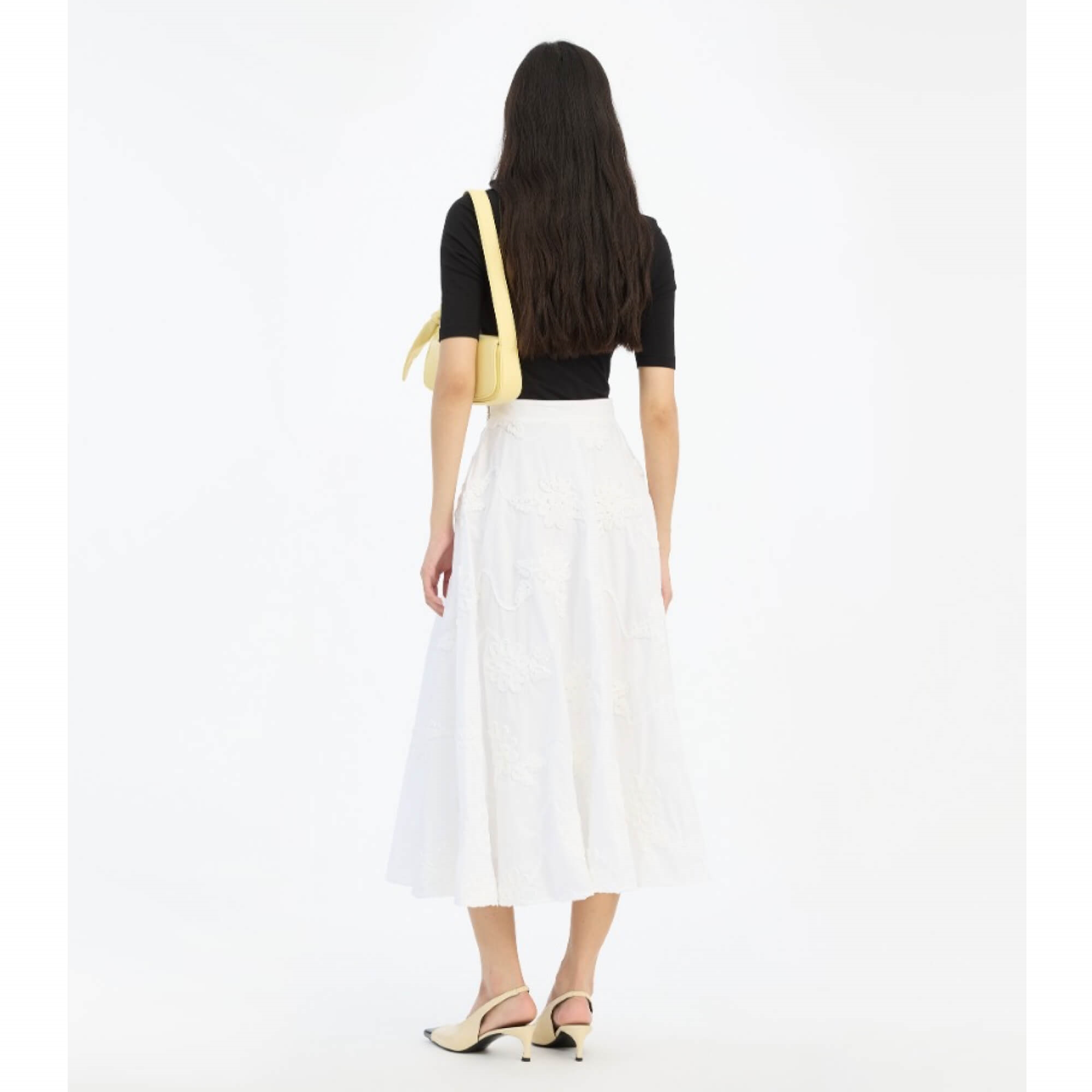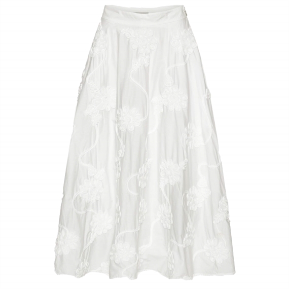 Den smukke Flower Maxi nederdel er denne elegante og romantiske maxinederdel i Bright White. Flower Maxi Skirt er designet i blød bomuld og pyntet med håndlavede, tredimensionelle blomsterapplikationer, der giver et eksklusivt og kunstnerisk udtryk.