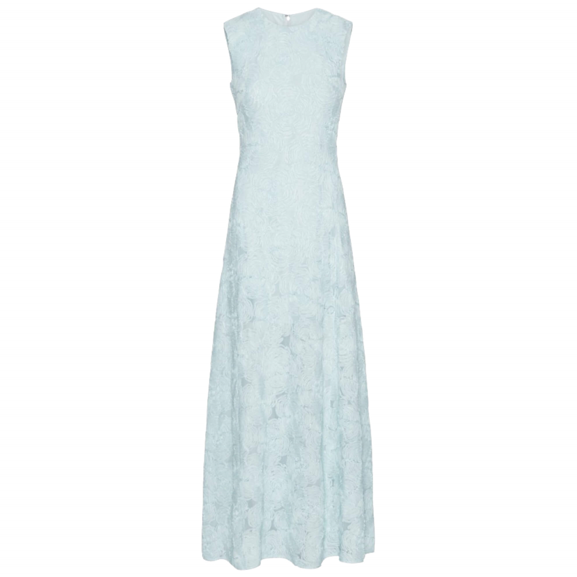Den smukke Mesh Maxi kjole er en ærmeløs maxikjole med rund halsudskæring og en figursyet talje, der smukt fremhæver silhuetten og falder ud i en let, svajende nederdel. Kjolen har en struktureret mesh-overflade med et floralt mønster, som giver et elegant og levende udtryk med flot dybde. En diskret lynlås i ryggen fuldender det rene design.