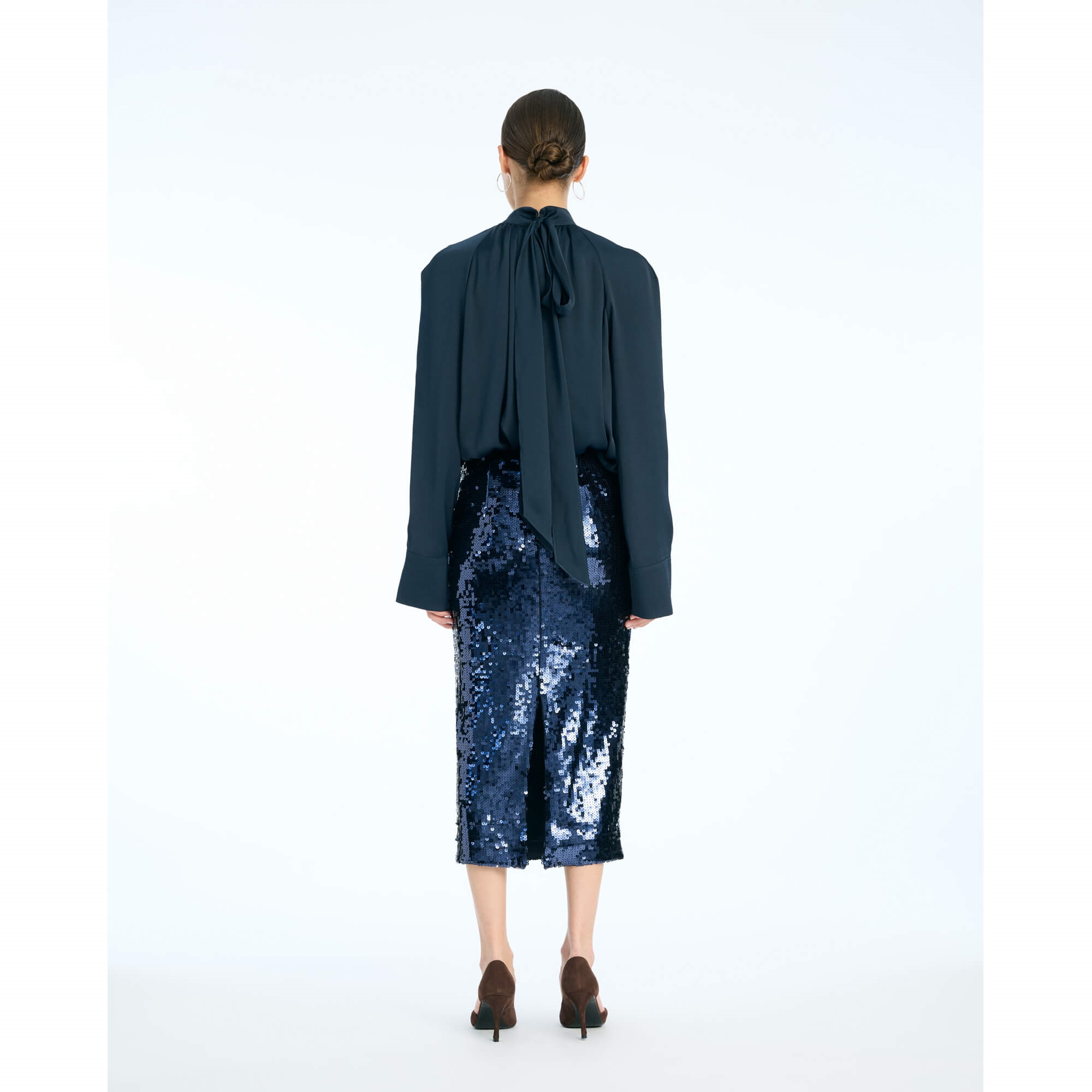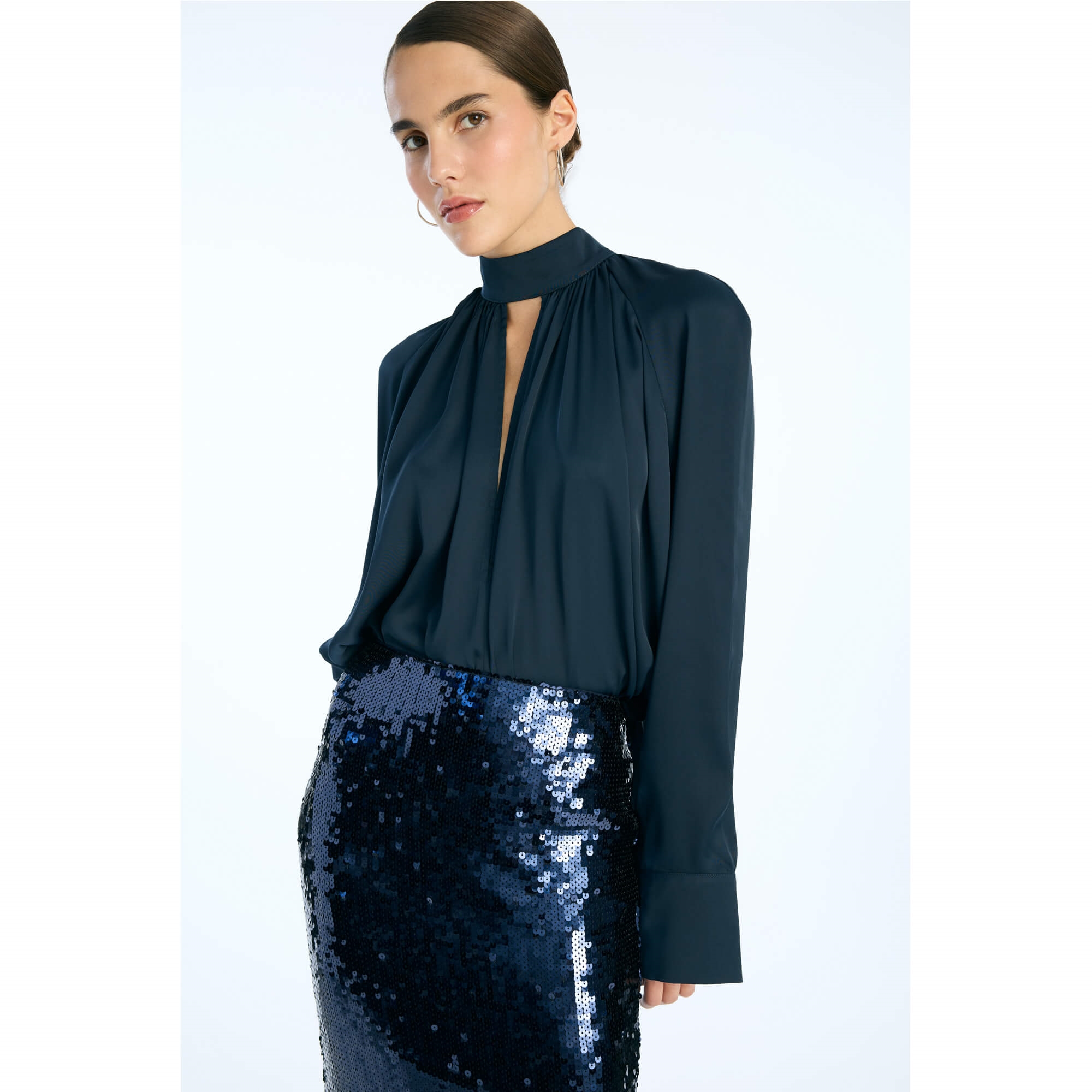 • Bedømmelse for Rotate Satin Bow Skjorte, Sky Captain