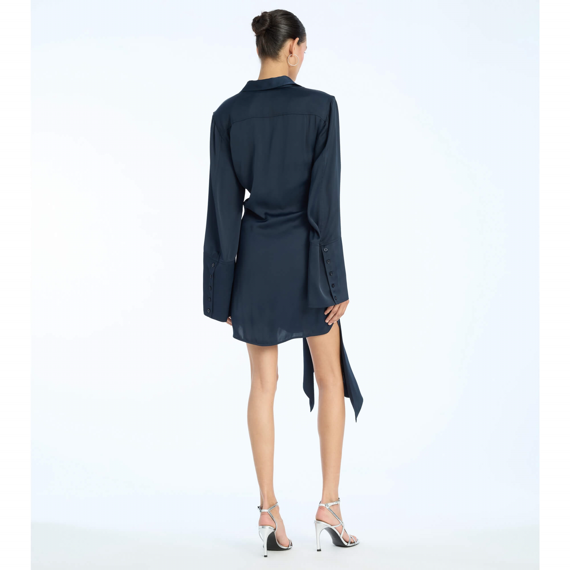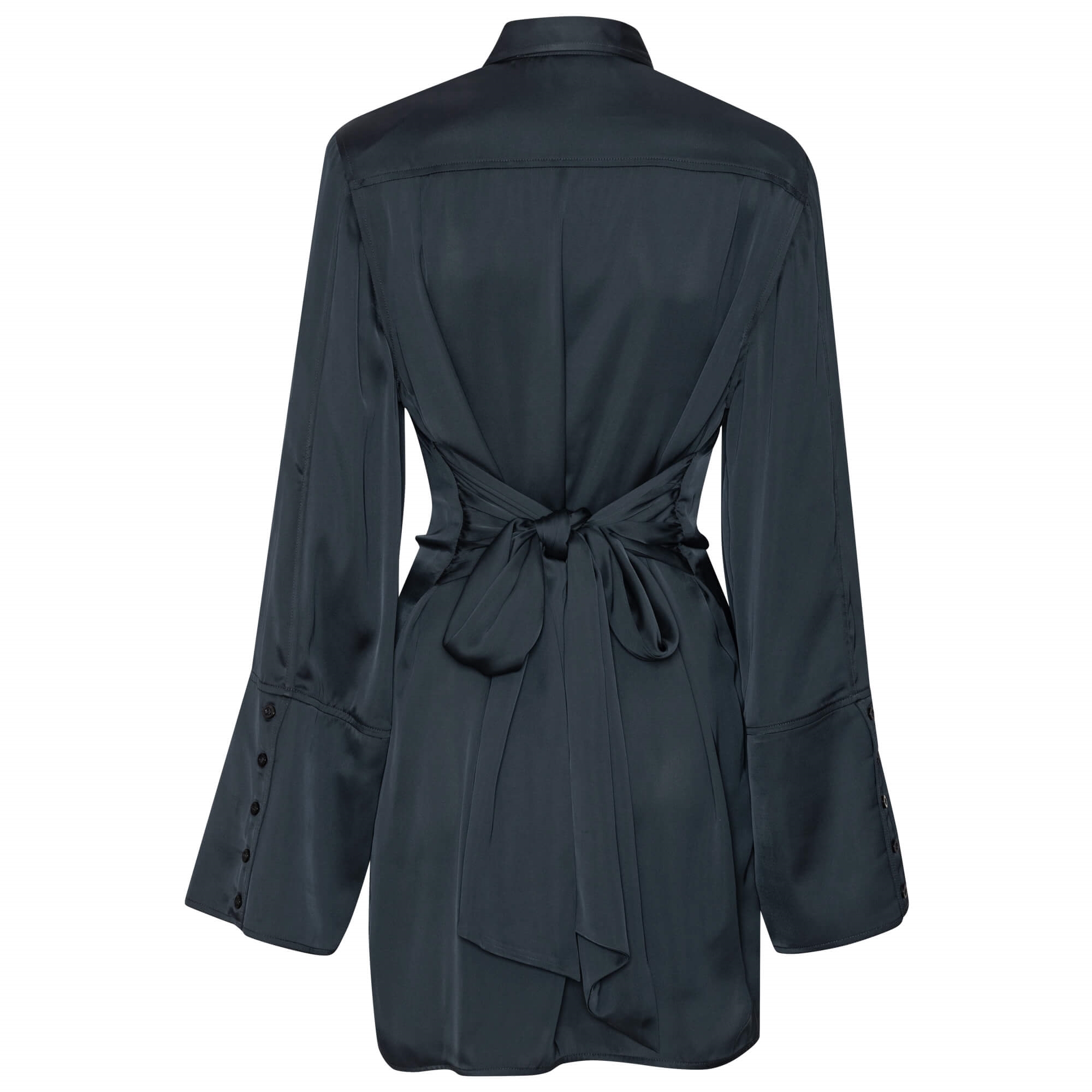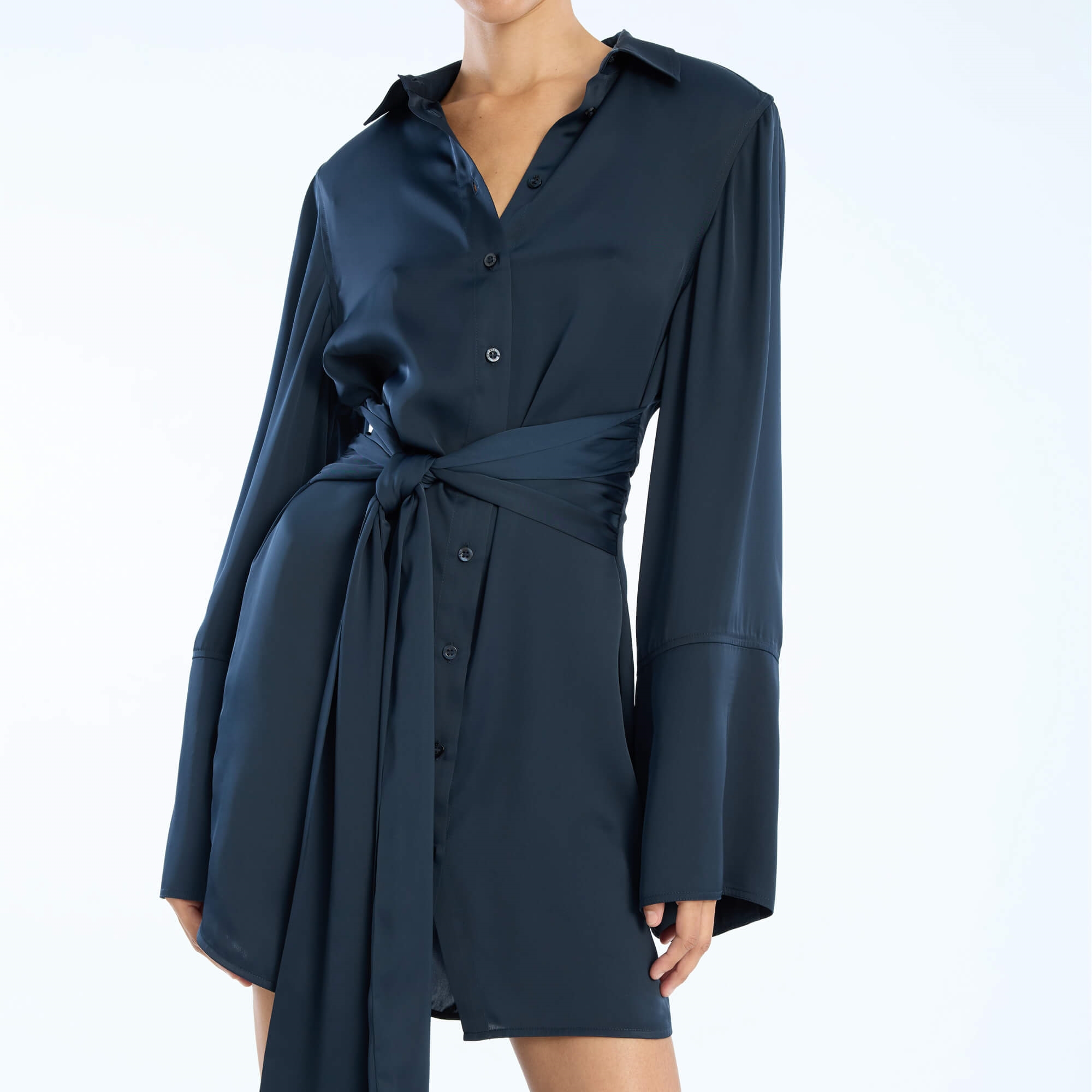 Rotate Satin Tie Shirt Dress, Sky Captain