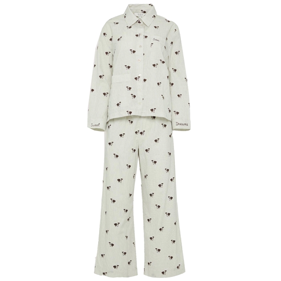 Gør sengetiden ekstra hyggelig med Ruthie pyjamassæt – et sødt og komfortabelt nattøjssæt designet til afslapning og gode drømme. Pyjamassættet er lavet i et blødt, stribet materiale og prydet med fine, broderede får, der giver et charmerende og legende udtryk.