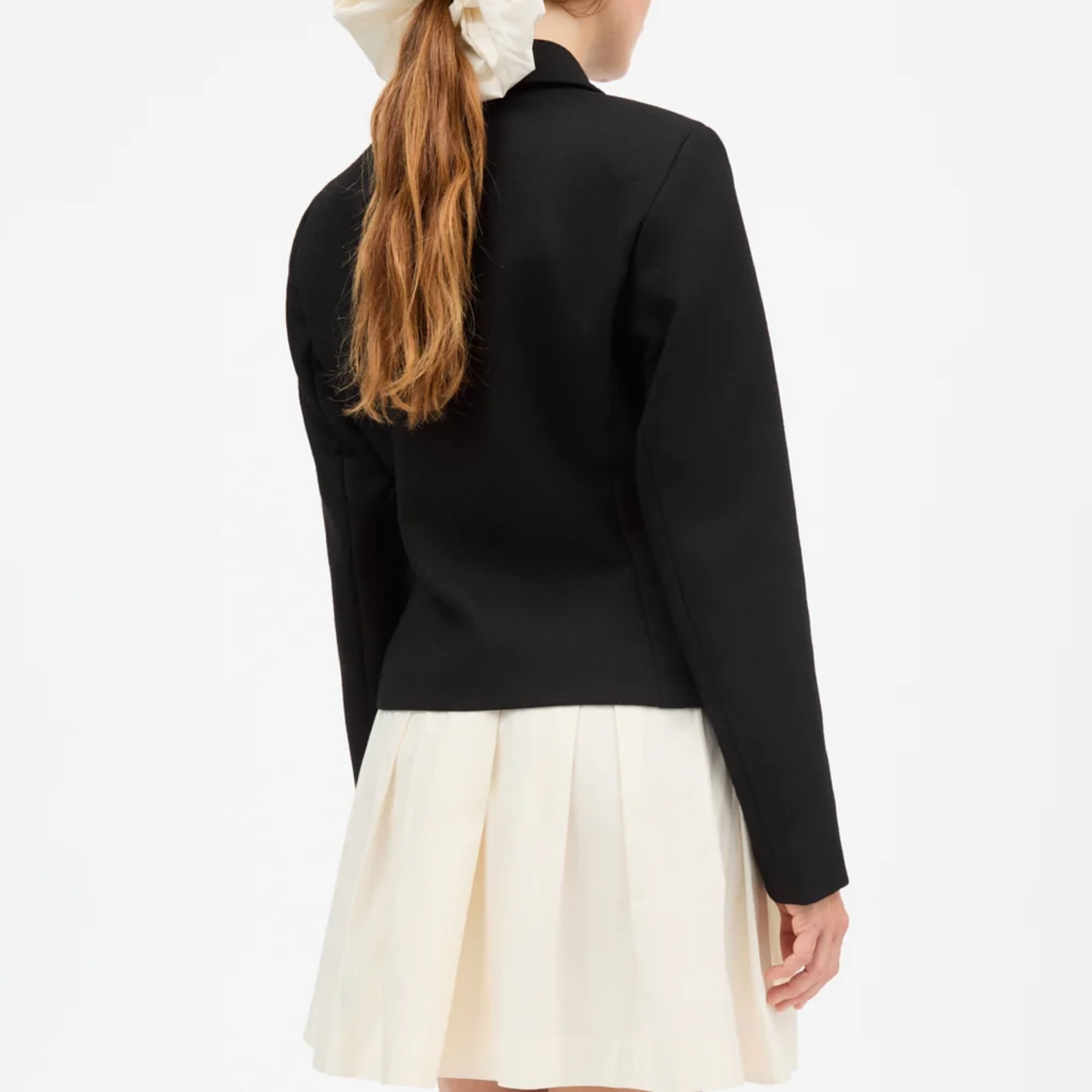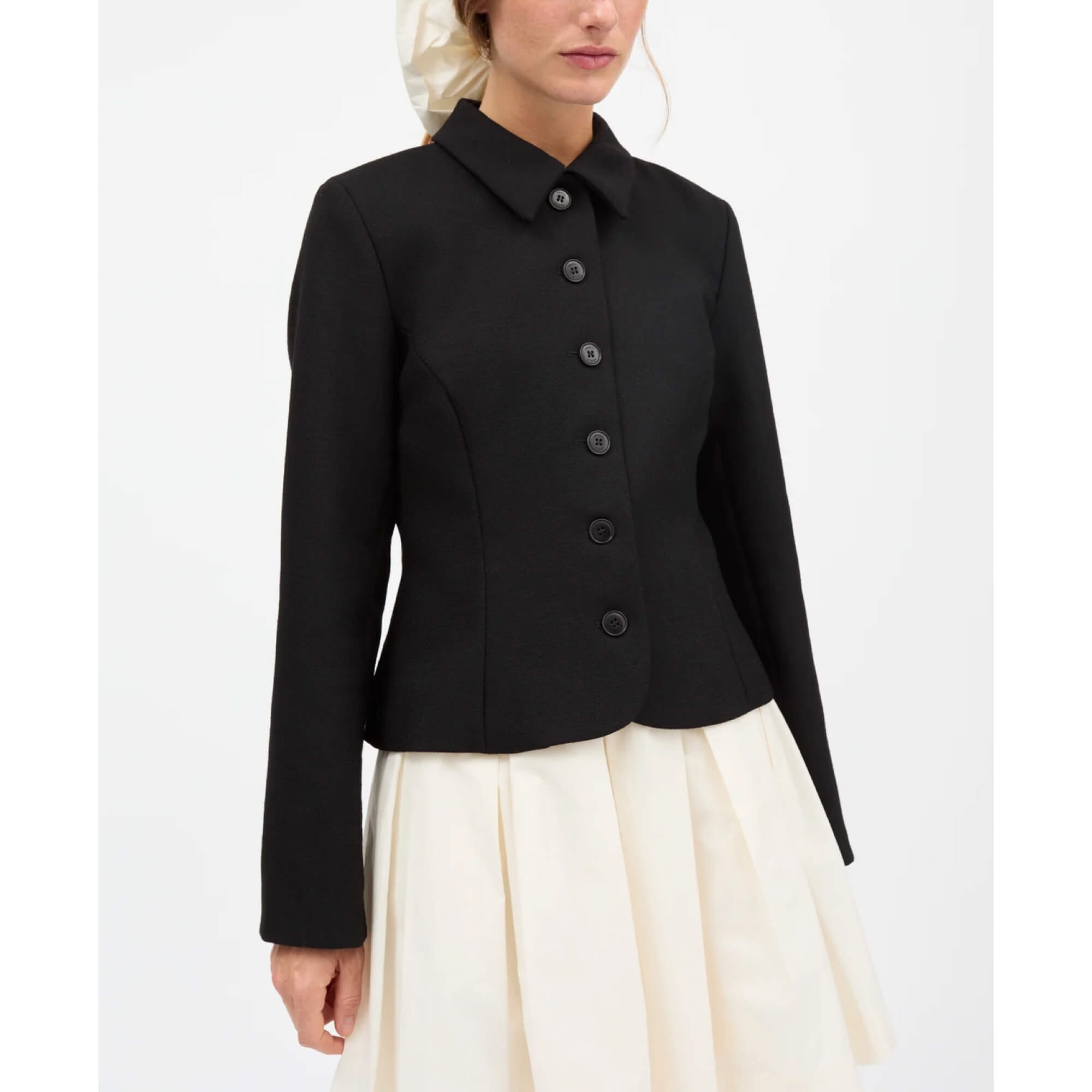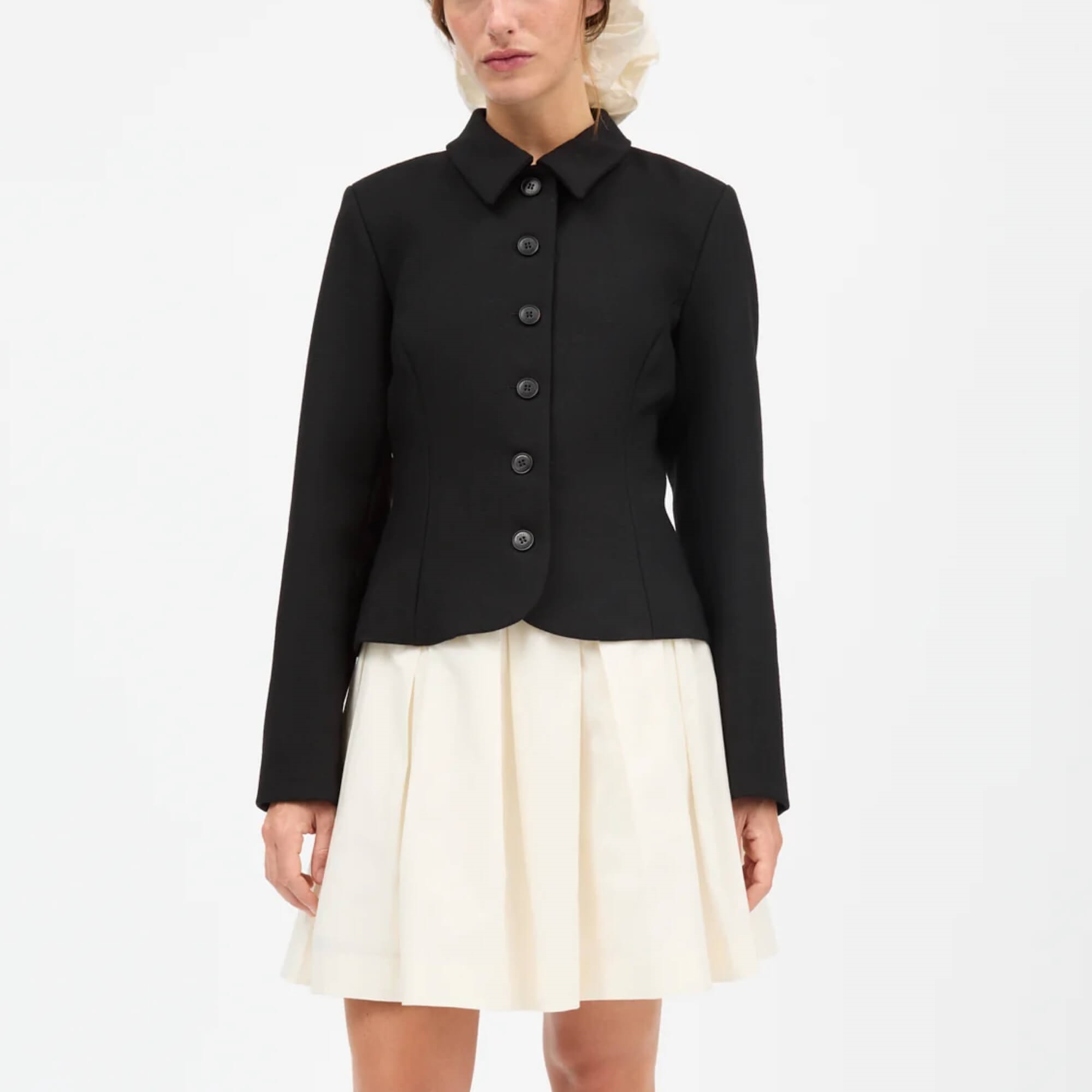 Den nye Ari Jacket fra Skall Studio er en smuk fortolkning af klassisk skrædderkunst, skabt i 100 % uld. Jakken har et figursyet snit med formskårne paneler, der elegant fremhæver silhuetten, og en klassisk skjortekrave, som giver et sofistikeret og tidløst udtryk.