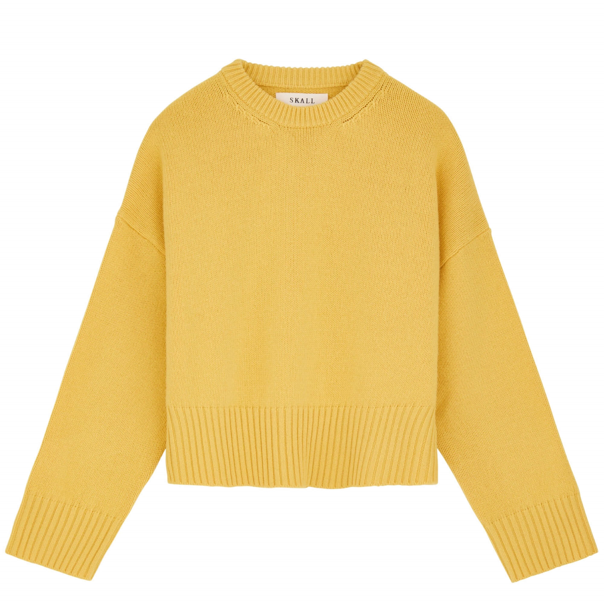 Campa Jumper Strik fra Skall Studio er en lækker oversized strik lavet i eksklusiv merinould som du vil elske at have på hele efteråret og vinteren i den skønne gule farve. Strikken har en klassisk hals, droppede skuldre og rib i bunden og på ærmerne. En musthave basis i din garderobe, som du vil elske år efter år!