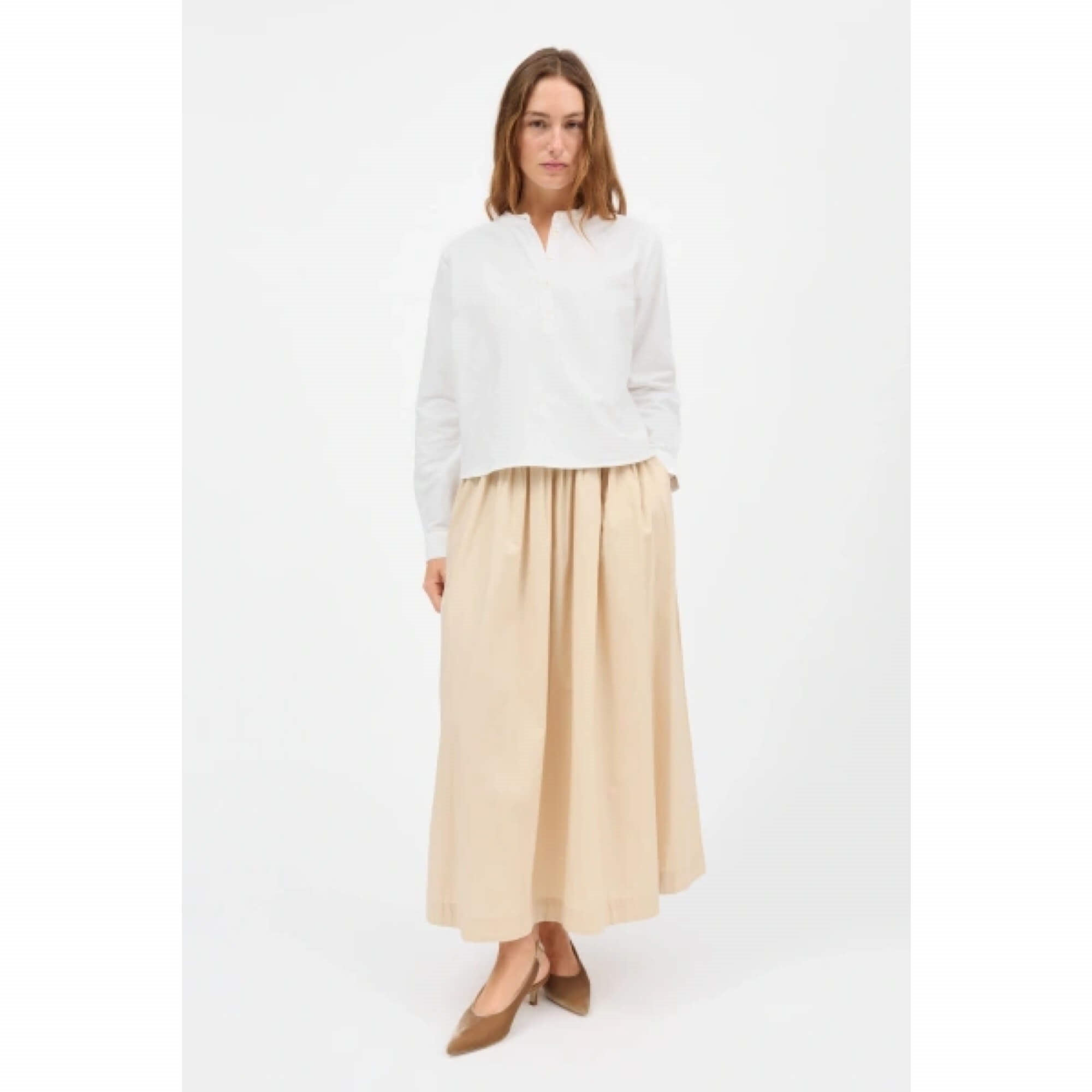 Dagny Skirt er en nederdel med elastisk talje i økologisk bomuld. Nederdelen har masser af vidde og sidelommer. Den fine Dagny nederdel er perfekt til det varmere vejr og kan både styles med en fin skjorte eller en simpel top - eller t-shirt.