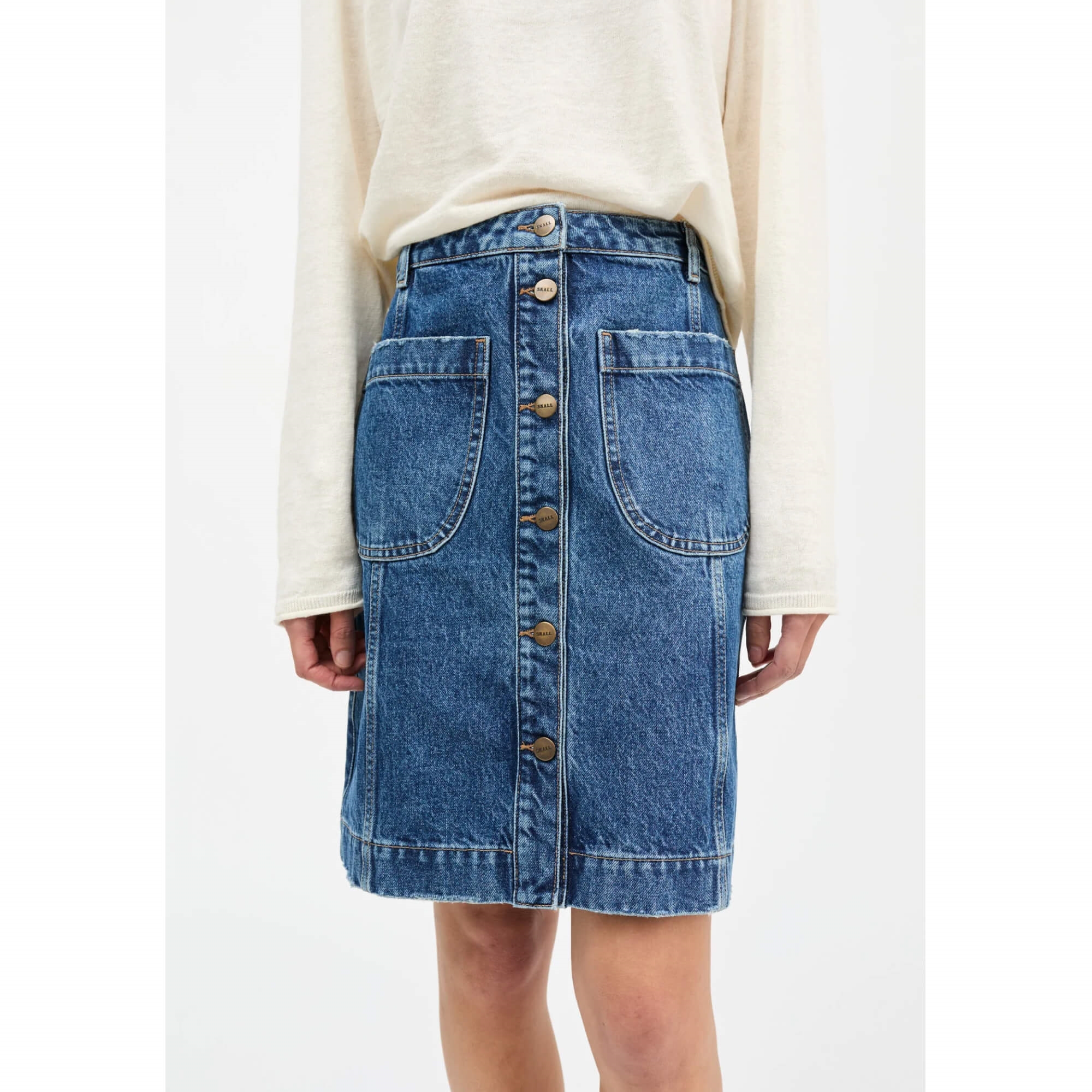 Margaux denimnederdel fra Skall Studio er indbegrebet af underspillet elegance og bevidst design. Den forener det klassiske denimudtryk med karakteristiske, skandinaviske minimalisme og skaber en pasform, der føles både tidløs og moderne.
