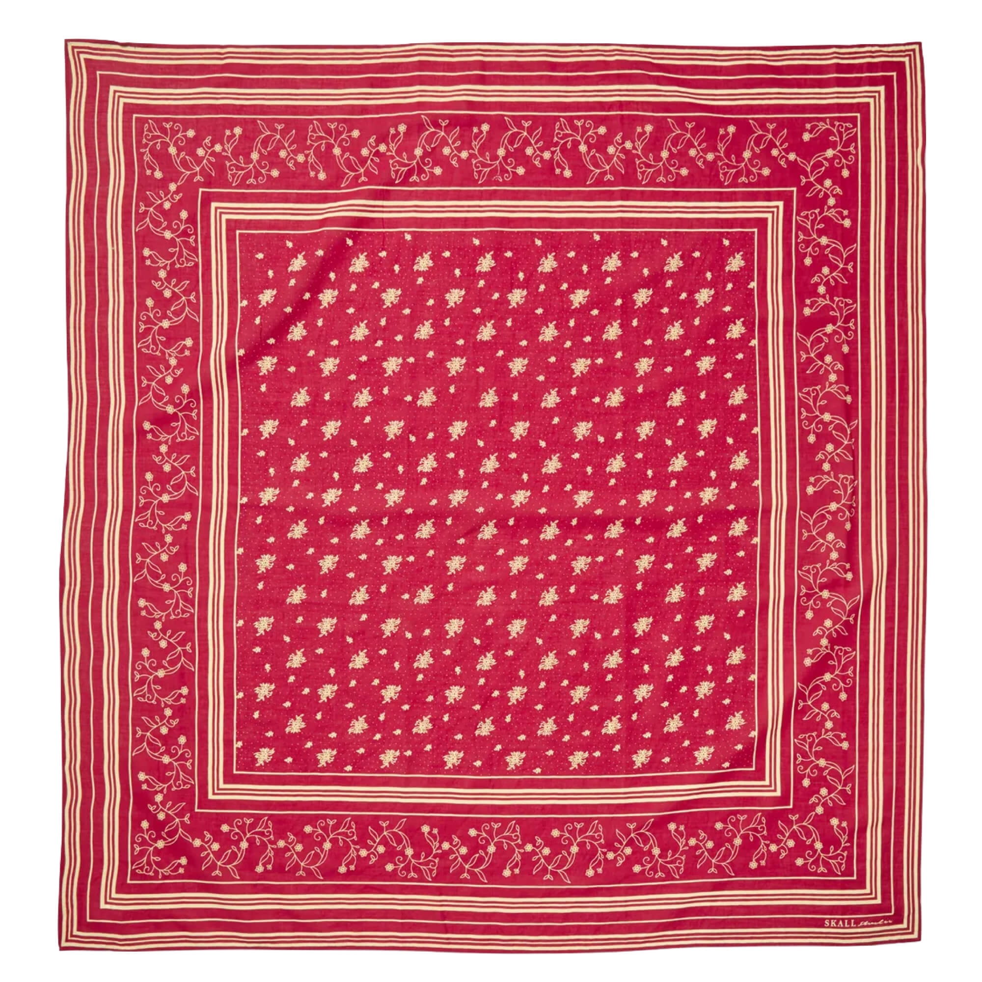 Smukt firkantet tørklæde fra Skall Studio i en blød og let 100% Organisk Bomuld og måler 90x90 cm. Tørklædet er designet med det fineste mønster i røde og cream nuancer