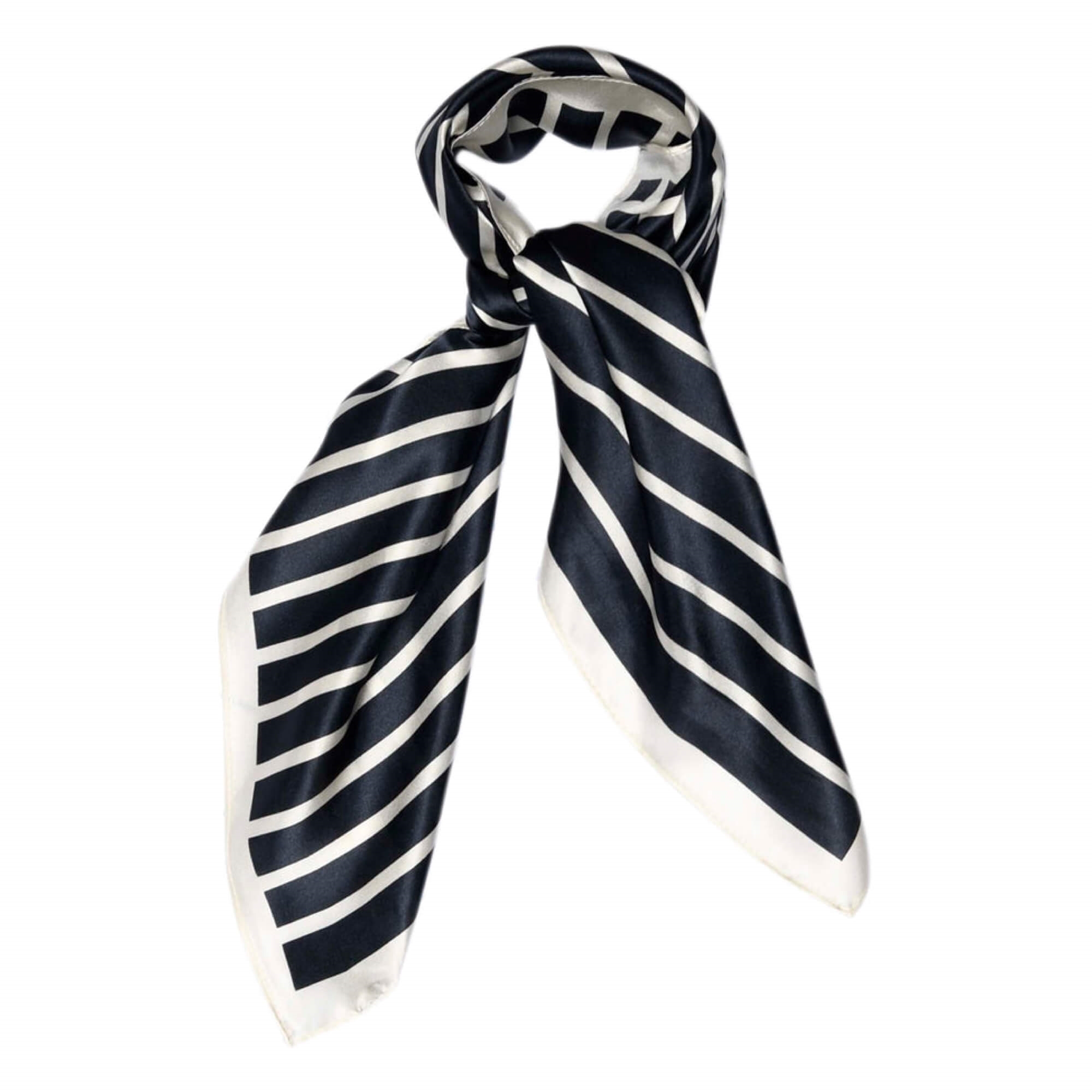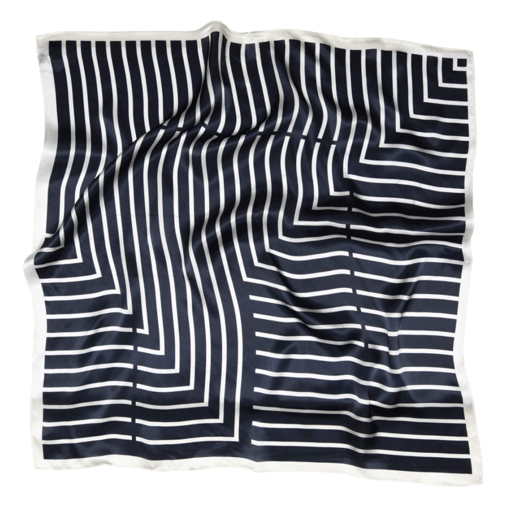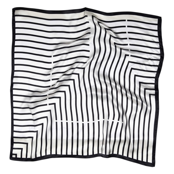 Det smukke Lines firkantet silketørklæde fra SneakyFox er i 100% blød silke med elegant stribet mønster. Tørklædet måler 68x68 cm og kan styles på utallige måder – Om halsen, i håret, rundt om taljen eller som et lille statement-accessory.