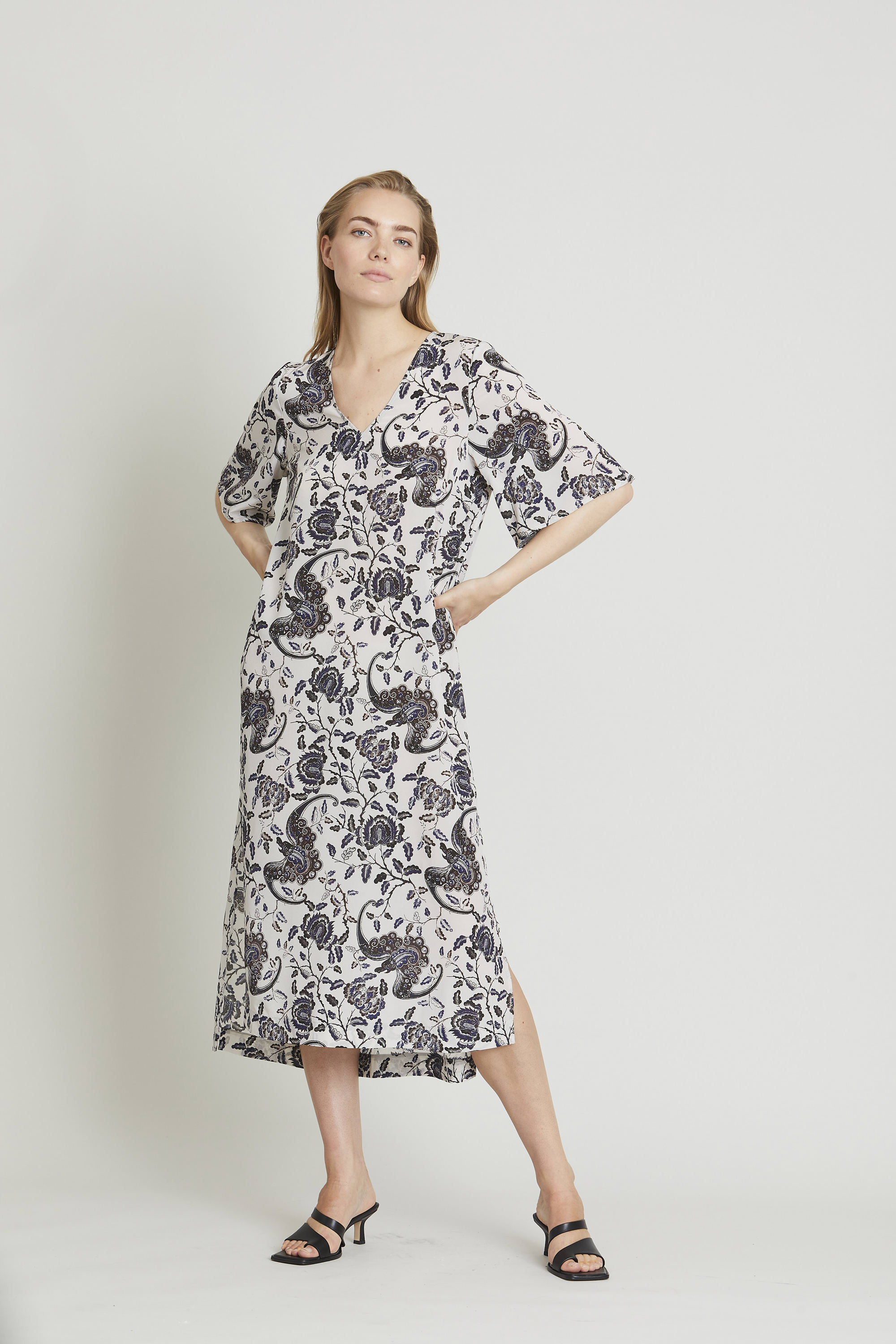 VANEA kjolen er en løstsiddende kjole i et smukt print, der forener komfort med stil. Den har brede 3/4-lange ærmer, der tilføjer et afslappet og moderne udtryk til designet.