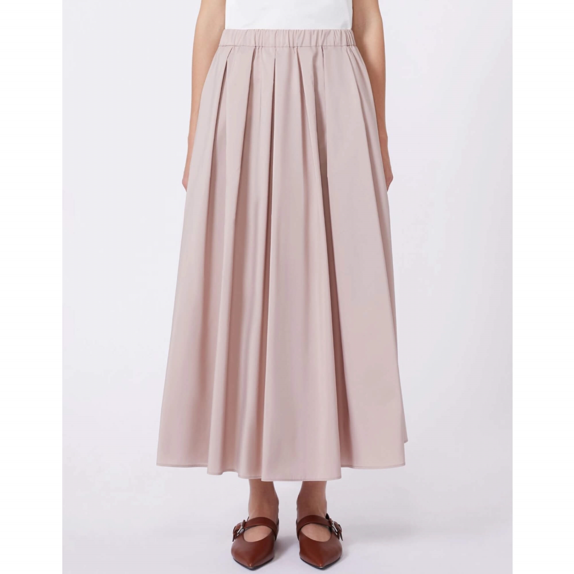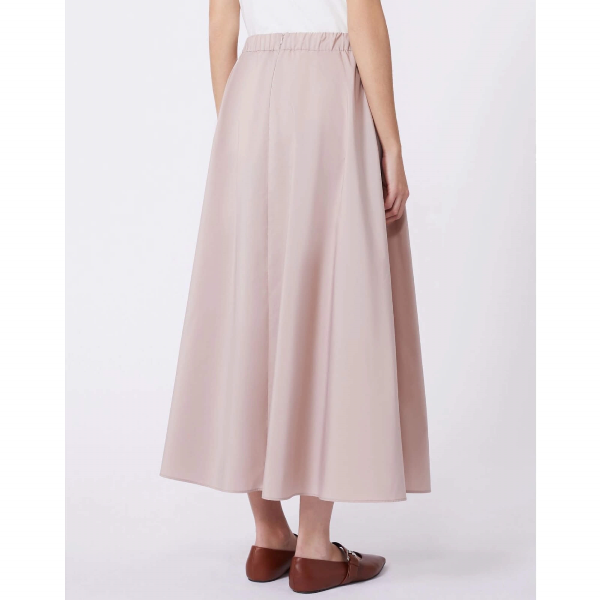 Frontens elegante læg skaber naturlig volumen og et flatterende fald, mens den elastiske talje sikrer en komfortabel, fleksibel pasform. En diskret, skjult lynlås bagpå samt praktiske, usynlige sidelommer fuldender det rene, luksuriøse look. Modellen er uforet, hvilket giver nederdelen en let og svævende fornemmelse.