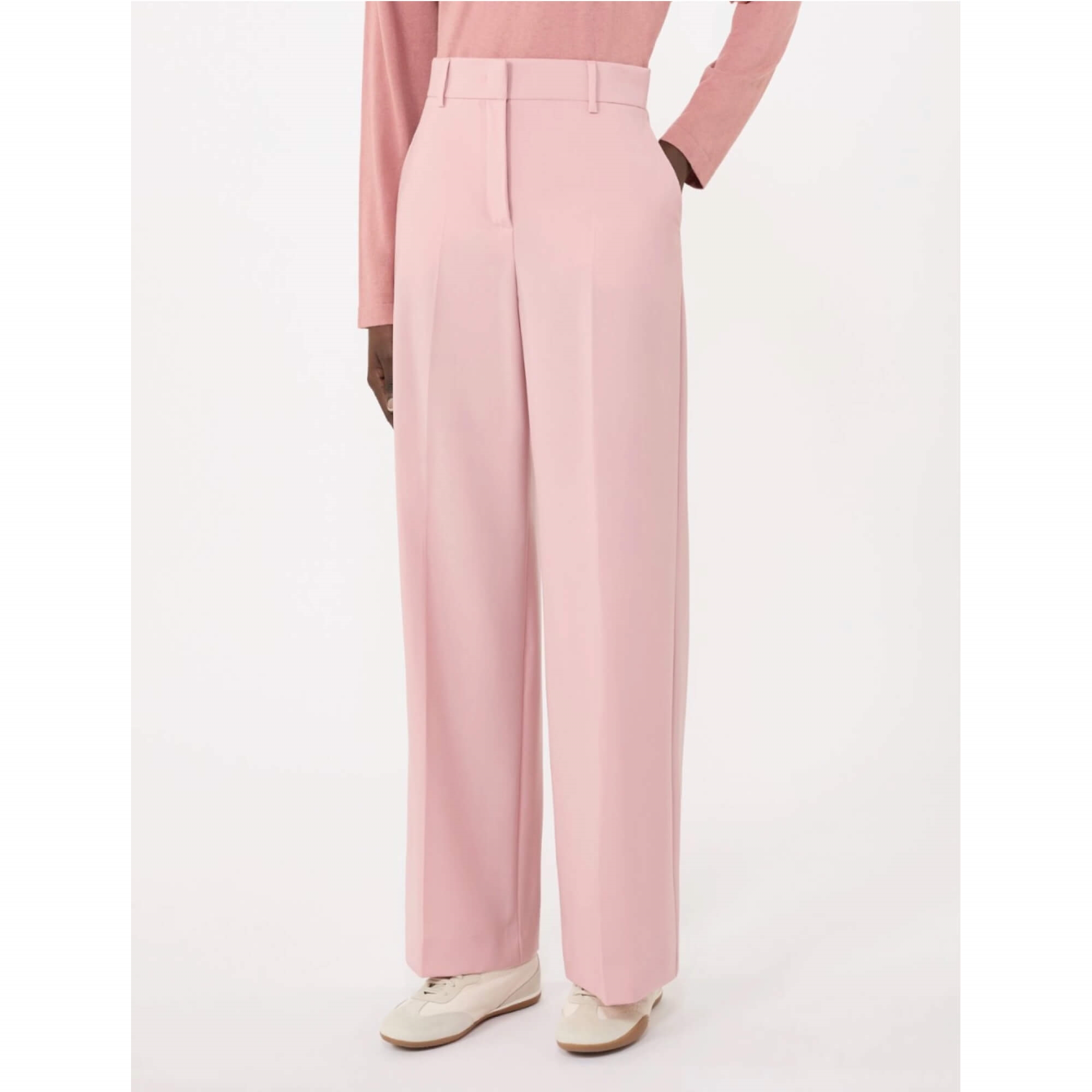 Bukserne er fremstillet i ren uld med stretch for optimal komfort og pasform. De har skrålommer i siderne, paspolerede baglommer med knap, bæltestropper samt diskrete pressefolder, der tilfører et sofistikeret finish. Brug dem alene eller sammen med WKDZINNIA Blazeren for et elegant og gennemført sæt i den smukke Antique Rose-farve.