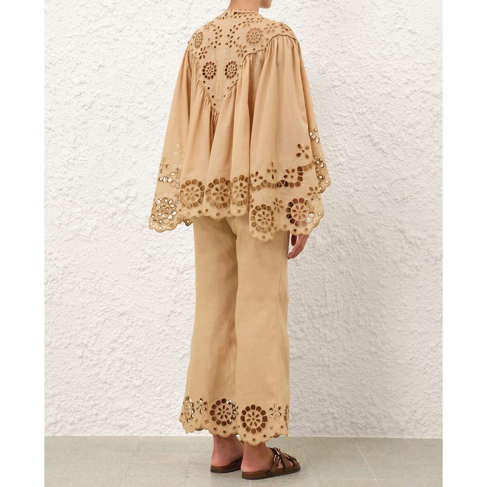 Zimmermann Awaken Embroidered Kick Flare Bukser, Straw