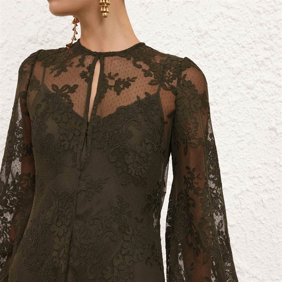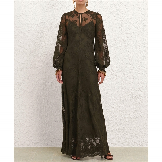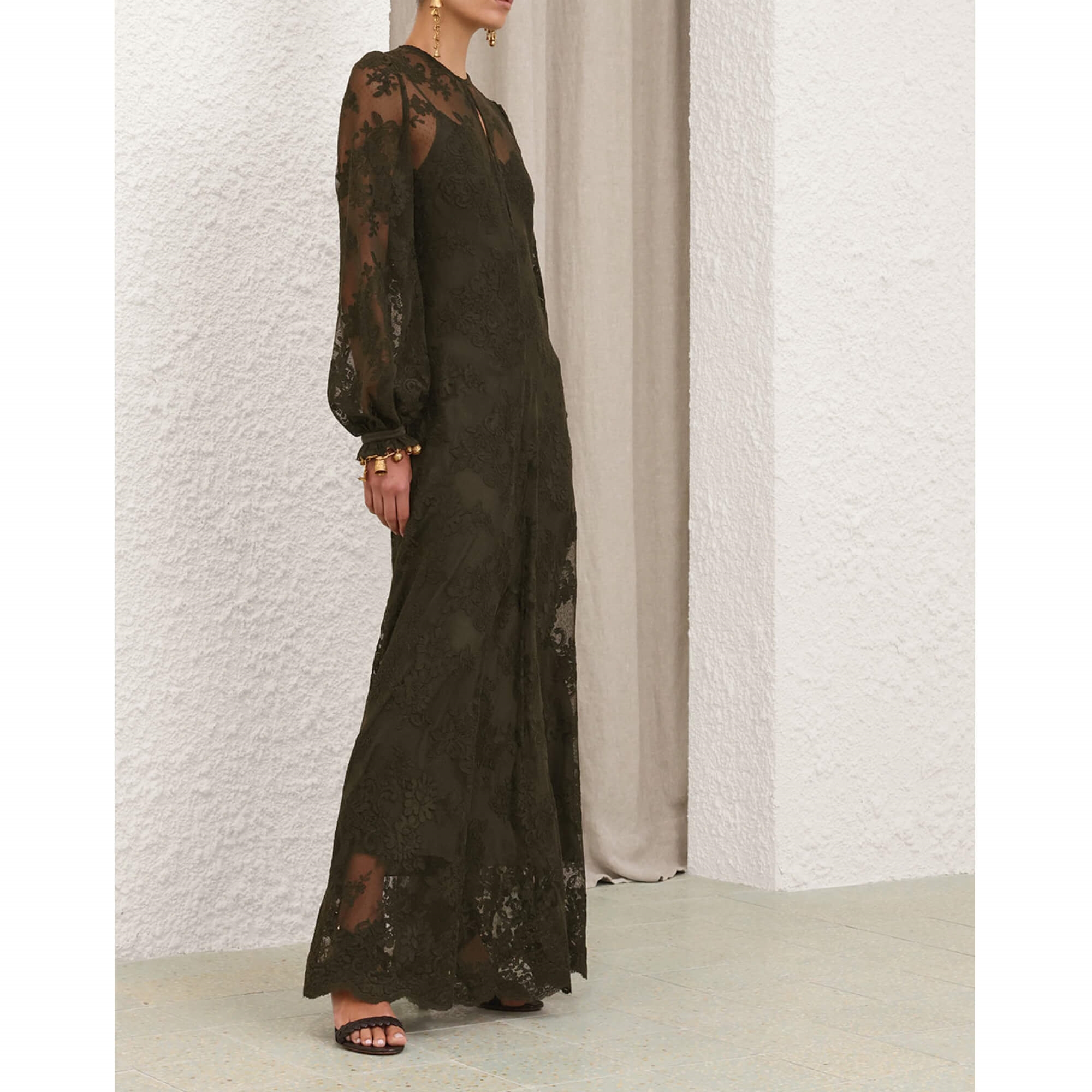 Zimmermann Memento Lace Maxi Kjole, Olive