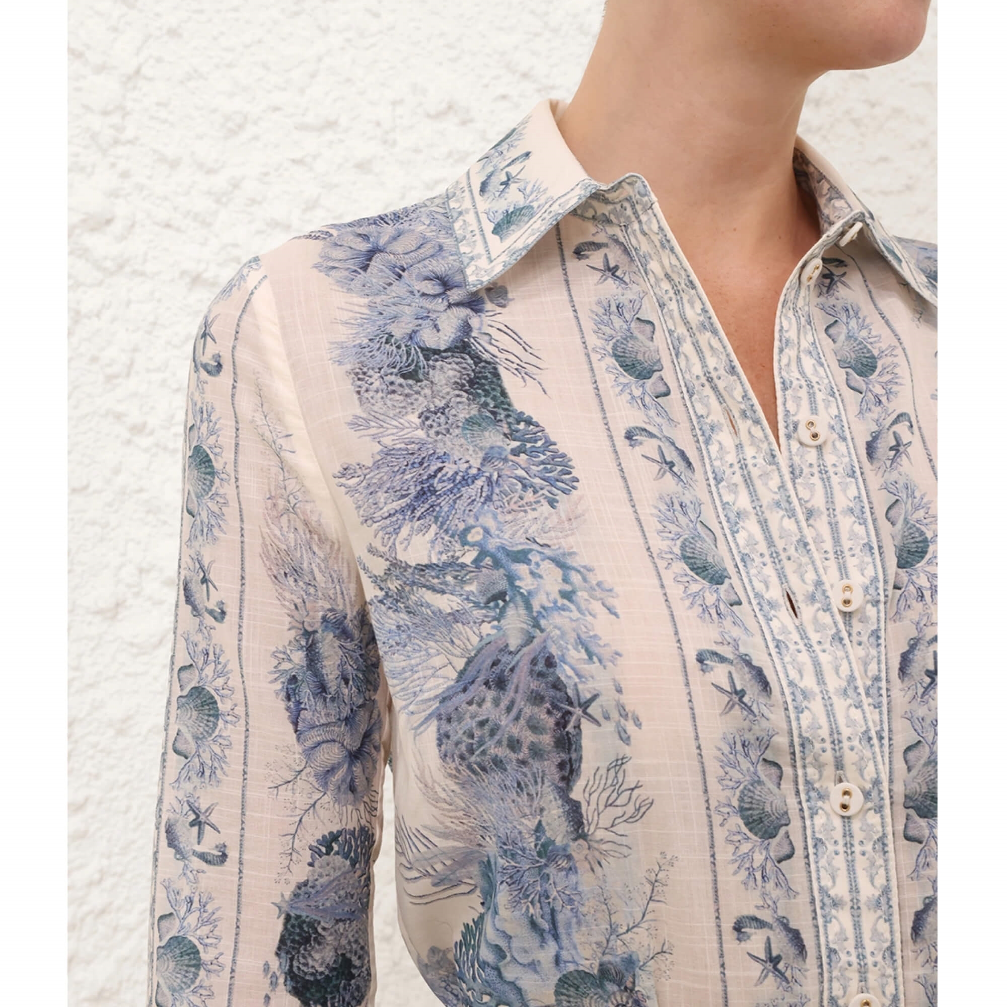 Zimmermann Wanderlust Body Skjorte, Blue Toile